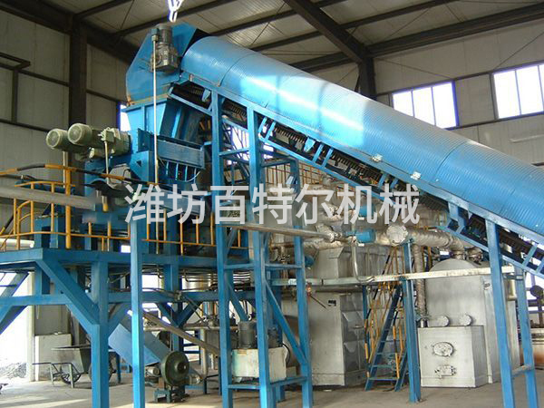 3、低成本实现环境效益,烟气二次氧化,有效控制污染物的排放。将燃气燃烧后的烟气二次引回加热室的烟气氧化箱净化,运用烟气氧化箱温度、时间、涡流方式控制技术,使烟气中存留的微量有害物质二次被氧化,抑制二恶英类污染物二次合成等技术关键。在不增加尾气处理设备的情况下,二恶英类污染物由之前的(第一代技术产品)0.087ngTEQ/m3降至0.013ngTEQ/m3。同时该设备的废气排放量小,是普通焚烧废气排放量的30%,有利于对大气污染及雾霾的控制。有机物减量率达到93%-95%。