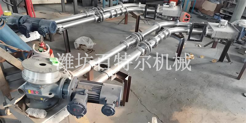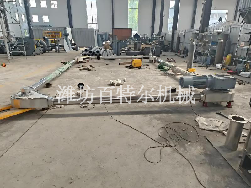 设备原理:由一根链条在形成闭环的两根管道内循环转动,链条上的刮板将物料刮动、搬运。传动方式为电机带动链轮,两端链轮分别是主动链轮与被动链轮。